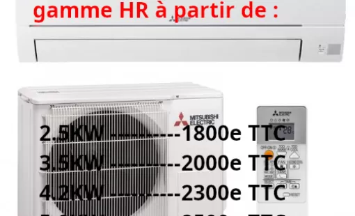 Offre Mono-Split Mitsubishi gamme HR TTC posé a partir de :