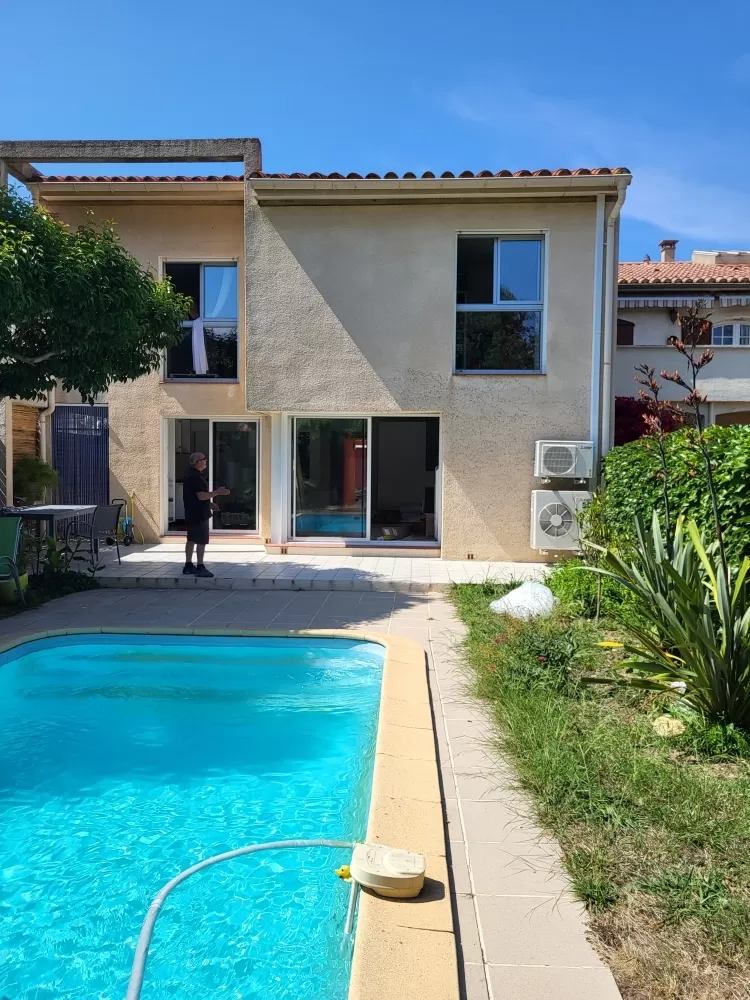 Installation en rénovation d'une pompe à chaleur air/air Mitsubishi de type console 7KW pour le séjour avec bi-split pour les chambres sur la commune de Perpignan