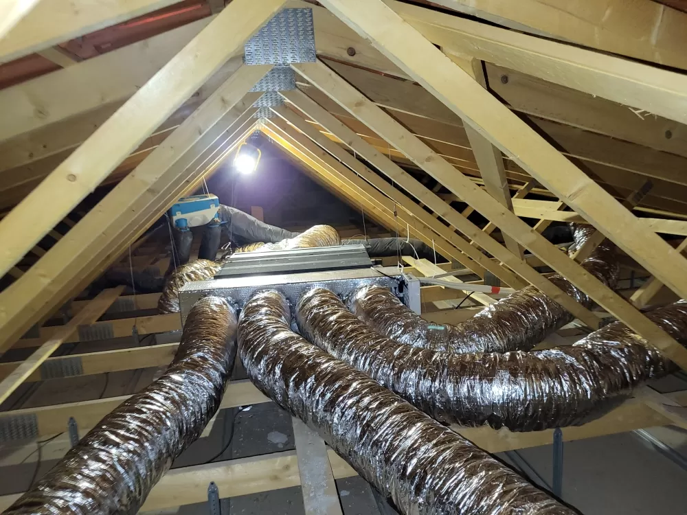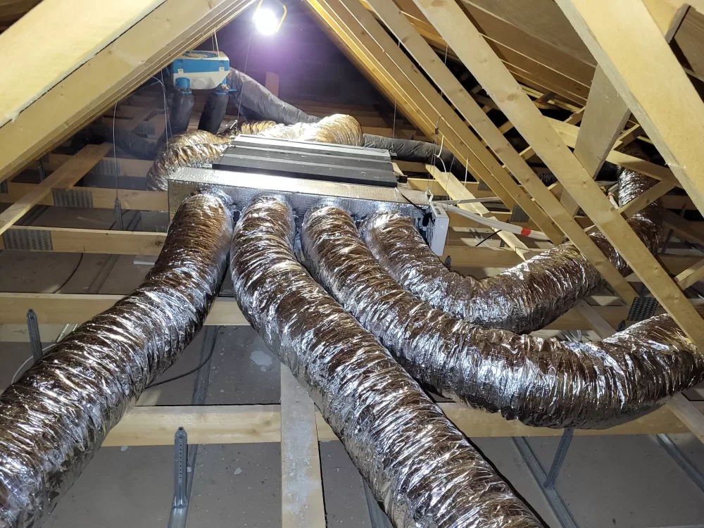 Installation en rénovation d'une pompe à chaleur air/air type gainable Mitsubishi 5KW avec régulation pièce par pièce Airzone 3 zones
